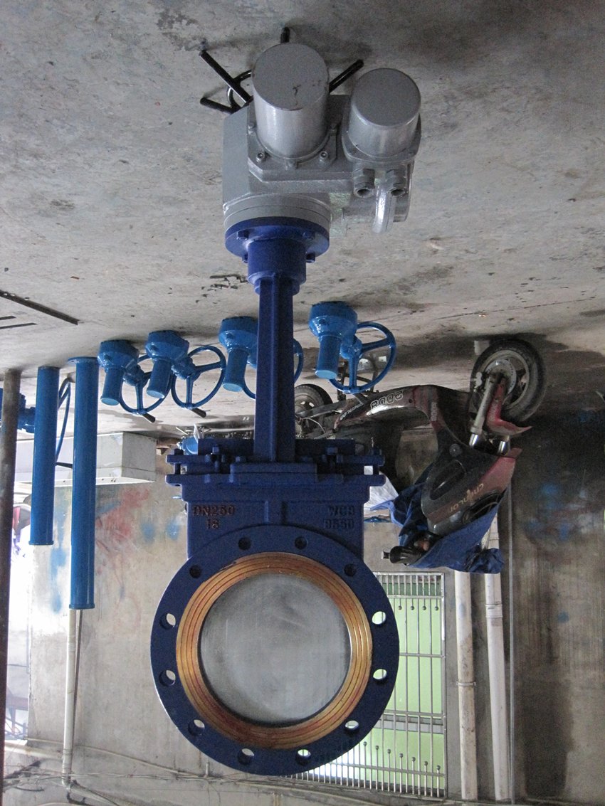 2、闸板有锋利的刀口,能够将流体介质中的固体颗粒排开或切割。